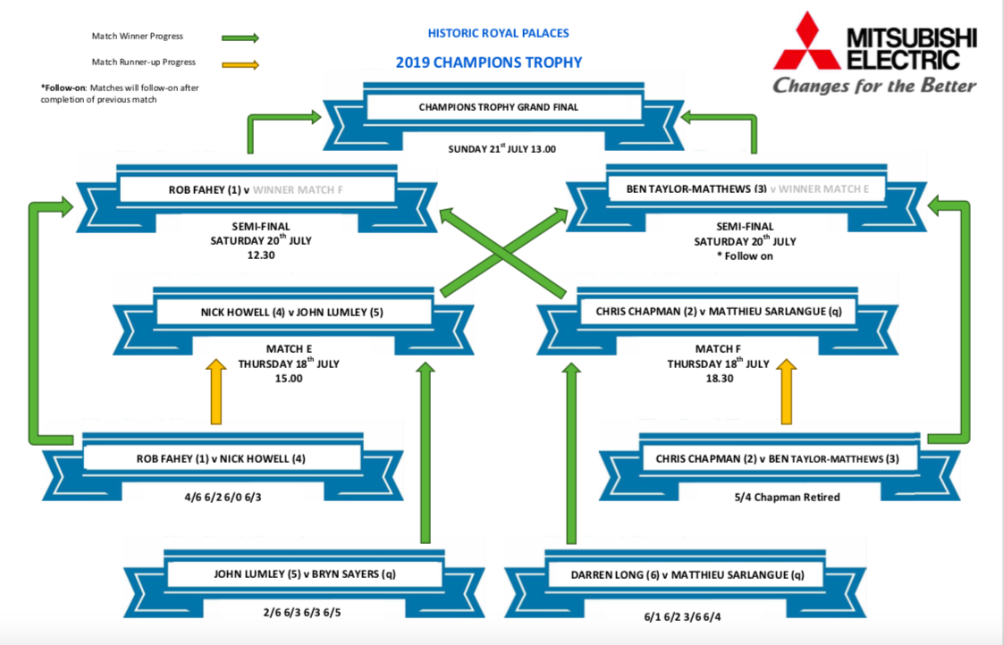 The title has been won by Rob Fahey who defeated John Lumley in 3 sets 6/2 6/4 6/4.